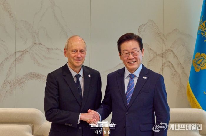 케나프데일리 이은성 기자 | 이재명 대통령은 오늘 오후 집무실에서 '정의란 무엇인가'의 저자인 마이클 샌델 미국 하버드대 교수를 접견했다.