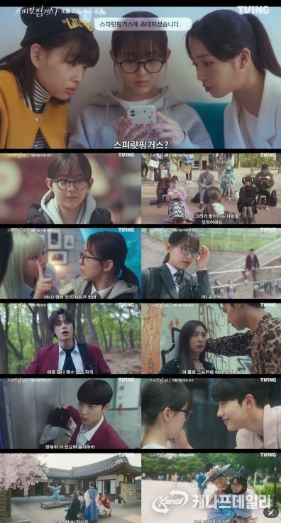 그런데 후반부에서 폭발한 설렘이 분위기를 반전시키며 예비 시청자들의 심박수를 올린다. 한복 콘셉트로 모인 스피릿 핑거스 멤버들 사이에서, 우연은 “이제 포즈는 자신 있다 이 말이오”라며 한껏 당당히 포즈를 취하고, 기정은 그런 그녀를 뿌듯하게 바라본다.