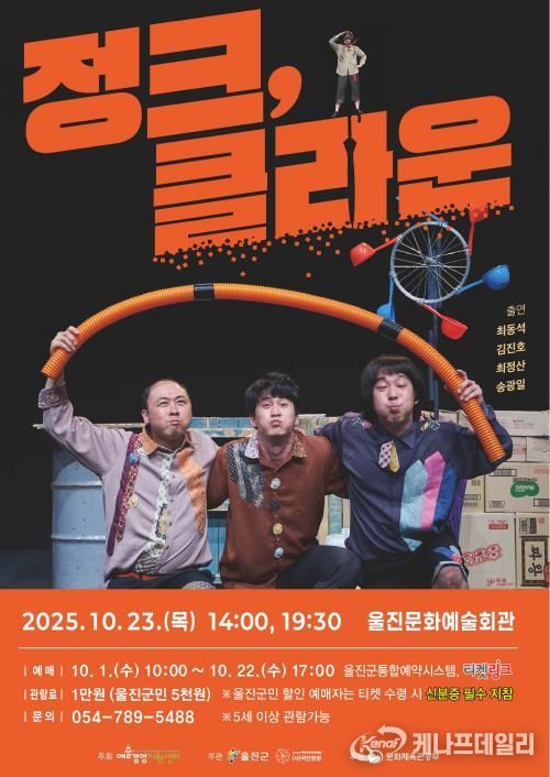 케나프데일리 이은성 기자 | 울진군은 오는 10월 23일 오후 14시, 19시 30분, 울진문화예술회관에서 2025 공연예술 유통 지원사업에 선정된 코믹 마임극‘정크, 클라운’공연을 두차례 선보인다.