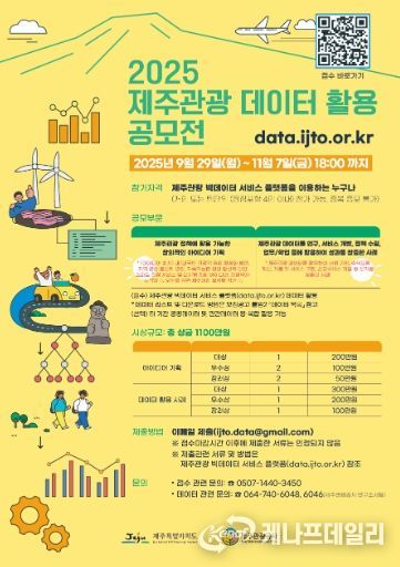 케나프데일리 이은성 기자 | 제주특별자치도와 제주관광공사는 오는 11월 7일까지 온라인 채널을 통해 ‘2025년 제주관광 데이터 활용 공모전’ 참가자를 모집하고 있다고 2일 밝혔다.