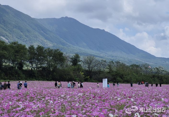 가조온천꽃단지는 연휴 기간 분홍빛․황금빛 코스모스가 만개하며 사진 명소로 큰 인기를 끌었다. 포토존과 커피쿠폰 이벤트, 치유프로그램 체험 부스 운영 등으로 방문객들의 만족도를 높였다.