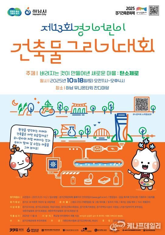 건축에 관심 있는 어린이들이 참가하는 ‘어린이건축물그리기대회’도 10월 18일 유니온타워 야외 잔디마당에서 진행된다. 이번 대회의 주제는 ‘버려지는 것이 만들어낸 새로운 마을 : 탄소제로’로, 경기도 내 미취학 아동과 초등학생이 참여할 수 있다. 대회를 통해 아이들은 자신만의 상상력을 발휘해 지속 가능한 미래의 건축물을 그리며, 건축에 대한 흥미와 이해를 높일 수 있을 것이다.
