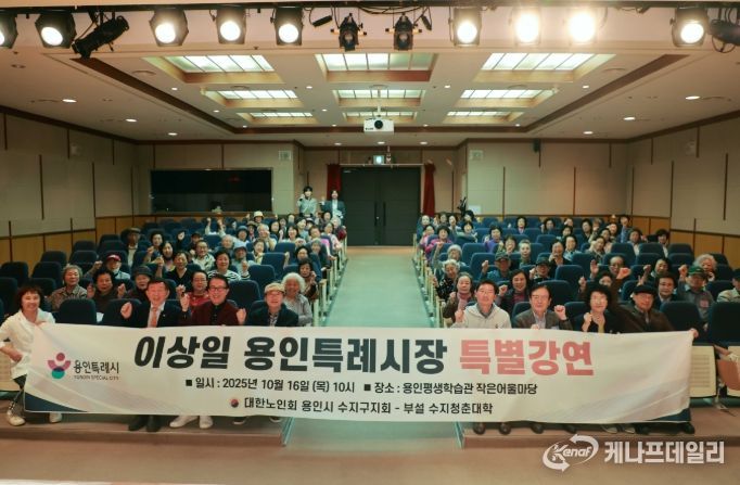 케나프데일리 이은성 기자 | 이상일 용인특레시장은 16일 오전 수지구 큰어울마당에서 대한노인회 용인시 수지구지회가 운영하는 수지청춘노인대학 어르신 100여 명을 대상으로 미술 특강을 했다.