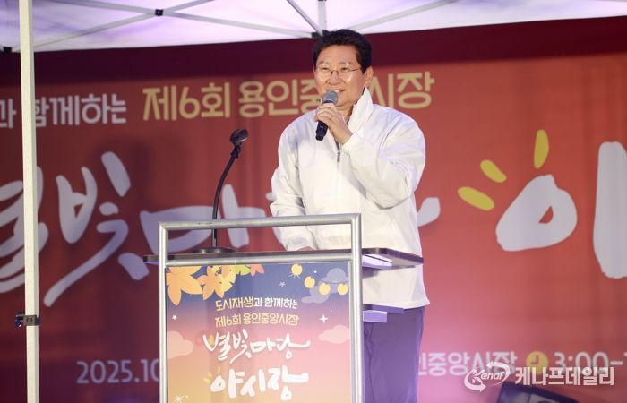 이상일 시장은 축사를 통해 “우리가 봄과 가을에 기다리는 것, 용인의 자랑인 용인중앙시장 별빛야시장이 개장했다”며 “지난해 3일 동안 약 27만명이 방문할 정도로 큰 사랑을 받았는데, 올해에도 더 많은 상인들이 힘을 보태고 더 많은 시민들이 응원해서 중앙시장 야시장이 갈수록 기다려지는 훌륭한 행사로 자리잡았다”고 말했다.