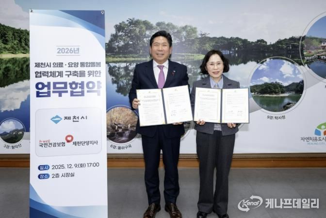 케나프데일리 이은성 기자 | 제천시는 지난 9일 국민건강보험공단 제천단양지사와 의료요양 통합돌봄사업 업무협약을 체결했다고 밝혔다.