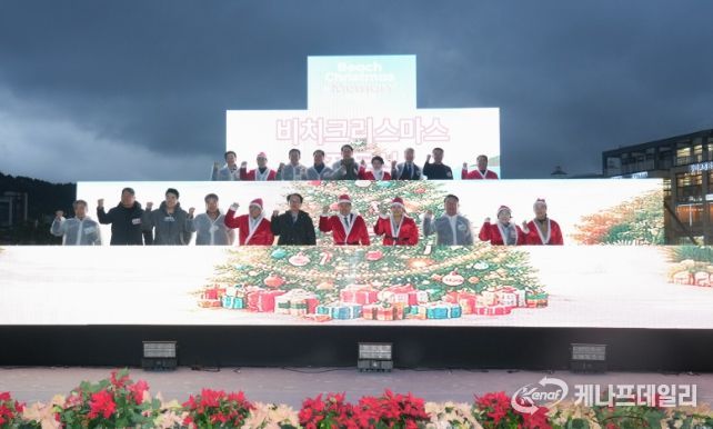 나우다 기념행사와 함께 개막한 ‘비치(beach) 크리스마스 & 메모리 2025’는 오는 25일까지 함덕해수욕장 일대에서 진행된다. 높이 5.5m 대형 트리와 중형 트리(2~3m), 포토존, 야자수·돌하루방 조명 등이 해변 전체를 크리스마스 분위기로 채우고 기존 플리마켓도 크리스마스 콘셉트로 운영된다.