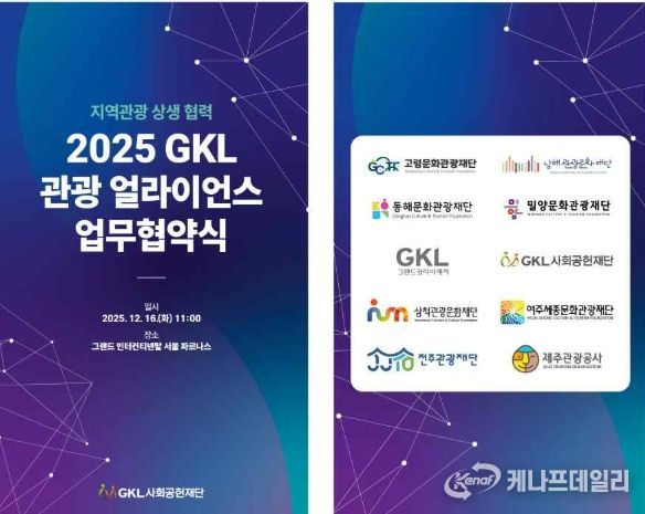 케나프데일리 이은성 기자 | 여주세종문화관광재단은 지난 12월 16일 GKL 사회공헌재단이 주관한 ‘GKL 관광 얼라이언스 업무협약식’에 참석하여, 전국 8개 지역관광 전담기관과 함께 문화·관광 분야 공익사업 협력을 위한 업무협약을 체결했다고 밝혔다.
