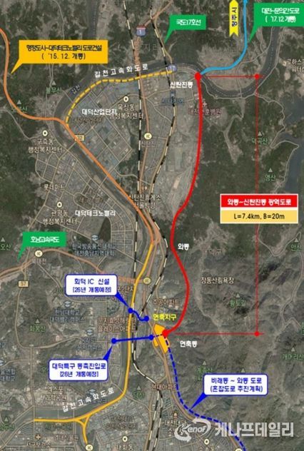 케나프데일리 이은성 기자 | 대전시는 대덕구 연축동~신탄진 용정초교를 잇는 ‘와동~신탄진동 도로개설사업’이 22일 기획재정부 재정사업평가위원회 심의를 거쳐 예비타당성조사 대상사업으로 선정됐다.