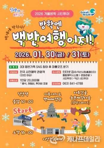 케나프데일리 이은성 기자 | 익산시가 겨울방학을 맞아 지역의 역사와 문화를 함께 즐길 수 있는 시티투어를 운영한다.