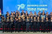 케나프데일리 이은성 기자 | 경상국립대학교 수의과대학은 설립 70주년을 맞이하여 70년 개척의 역사를 바탕으로 미래 100년을 향한 새로운 비상을 기념하기 위해, 10월 23일 오후 5시 칠암캠퍼스 100주년 기념관에서 ‘70년 개척의 자부심, 100년을 향한 새로운 비상’이라는 슬로건으로 ‘경상국립대학교 수의과대학 70주년 기념행사’를 개최했다. 기념행사에는 경상국립대학교 권진회 총장, 권순기 전 총장, 김상현 수의과대학장과 명예교수, 교직원, 학생, 최재영 수의과대학 총동문회장과 동문회 임원, 대한수의사회 허주형 회장, 이영락 부산수의사회 회장, 엄상권 경남수의사회 회장 등 300여 명이 참석했다. 기념행사는 개식, 국민의례, 내빈 소개, 대학 발전사 영상 시청, 환영사, 학사보고, 기념사, 축사, 공로패 수여, 감사패 수여, 발전기금 전달식, 학생 축하공연, 교가 제창, 기념 촬영 등의 순으로 진행됐다. 이날 행사에서 수의과대학 발전에 기여한 수의과대학 김종섭 명예교수, 최상용 명예교수, ㈜코미팜 문성철 대표, 대한수의사회 허주형 회장, 부산수의사회 이영락 회장에게 공로패를 수여했다. 또한 서