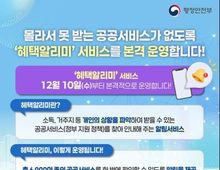 케나프데일리 이은성 기자 | 몰라서 못 받는 공공서비스가 없도록 '혜택알리미' 서비스를 본격 운영합니다! '혜택알리미' 서비스 12월 10일(수)부터 본격적으로 운영합니다! 혜택알리미란? 소득, 거주지 등 개인의 상황을 파악하여 받을 수 있는 공공서비스(정부 지원 정책)를 찾아 안내해 주는 알림서비스 혜택알리미, 이렇게 운영됩니다! 총 6,000여 종의 공공서비스를 한 번에 확인할 수 있도록 알림을 제공 혜택알리미 서비스 확대 (시범운영) - 운영기간: '25.1.10.~12.9. - 알림분야: 4개(청년·출산·구직·전입) - 알림 대상 수: 1,500여종 - 알림 대상자: 청년, 임산부, 구직자, 전입자 (본격운영) - 운영기간: '25.12.10.~ - 알림분야: 전 분야 - 알림 대상 수: 6,000여종(+4,500) - 알림 대상자: 모든 국민 ☞ 더 자세한 정보는 정부24→'혜택알리미' 탭에서 확인해 주세요.