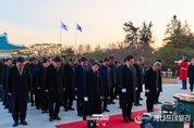 케나프데일리 이은성 기자 | 이재명 대통령은 2026년 병오년 새해 첫날, 국립서울현충원 참배로 공식 일정을 시작했다. 참배식에는 김민석 국무총리 및 국무위원·장관들과, 강훈식 대통령비서실장을 비롯한 청와대 참모진이 함께했다. 먼저 이 대통령은 현충탑에 헌화·분향한 뒤 묵념하며 순국선열과 호국영령의 넋을 기렸다. 이어 방명록에 '“함께 사는 세상” 대한민국 대도약의 원년 대한국민과 함께 열겠습니다'라고 서명하면서 병오년 새해 의지를 담았다. 참배 이후 이 대통령은 청와대 직원식당에서 현충원 참배 참석자들과 떡국으로 조찬을 하며 덕담을 나눴다. 국립서울현충원 참배(이재명tv 유투브)